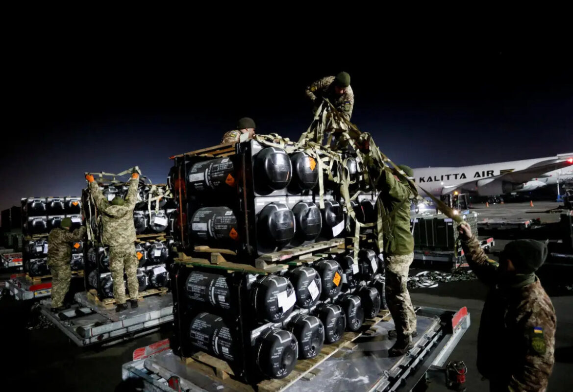 A US arms shipment destined for Ukraine. Image: Screengrab / CNBC