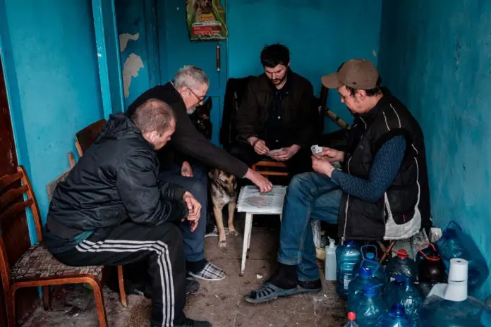 Men pass time living in underground bunker in Rubizhne. [Source: thesundaily.my]