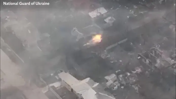 Footage of Ukrainian Army tank firing missile in Lugansk. [Source: independent.co.uk]