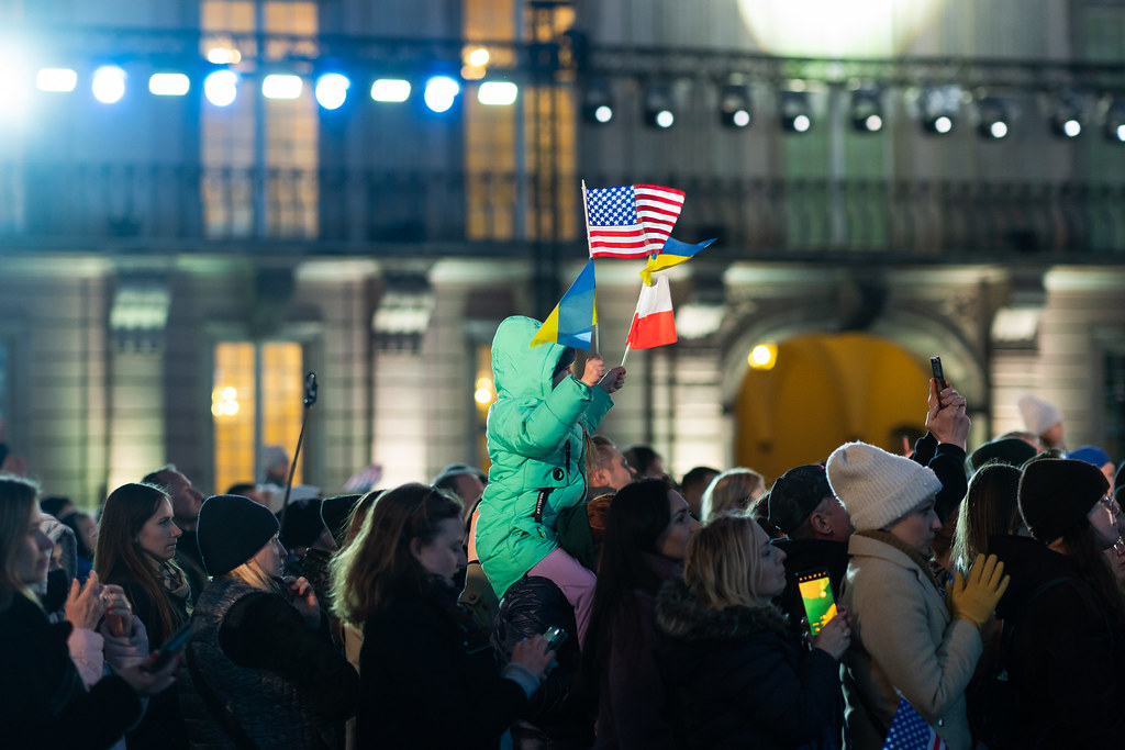 Crowd at the Royal Castle in Warsaw on March, 26, 2022, when U.S. President Joe Biden, in addressing the war in Ukraine, said Russian President Vladimir Putin “cannot remain in power.” (White House, Cameron Smith)