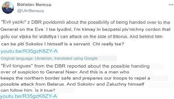 : Ex-Rada deputy Borislav Bereza throws in with Goncharenko. Says high level military firings are imminent based on his “sources within the State Bureau of Investigation”